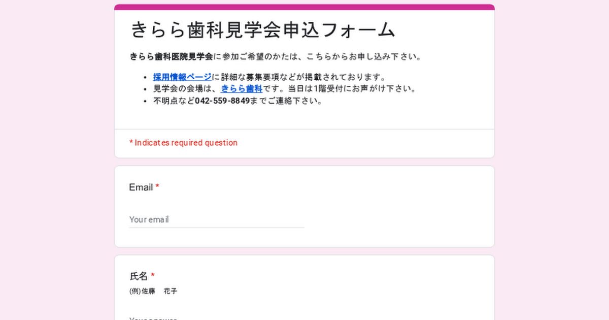 きらら歯科見学会申込フォーム