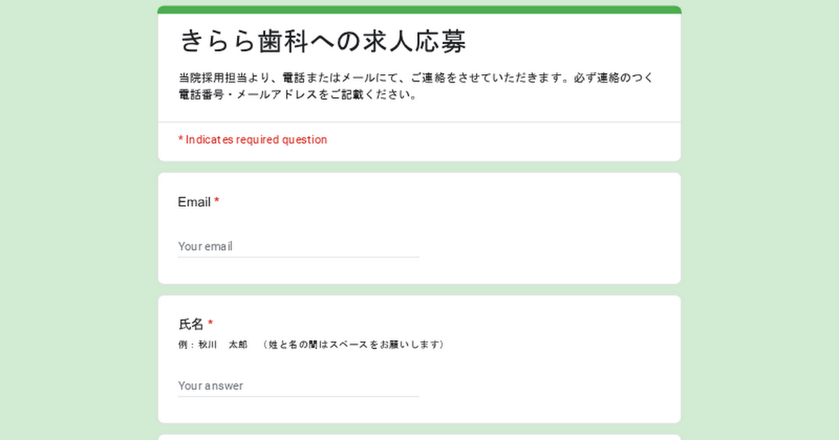 きらら歯科への求人応募