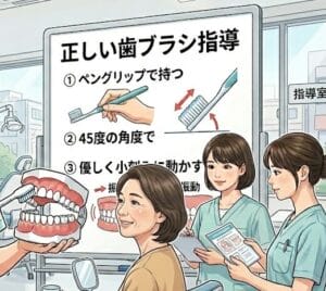 - ブラッシング指導: お一人おひとりのお口の形に合わせた、効率的な磨き方をアドバイスします。