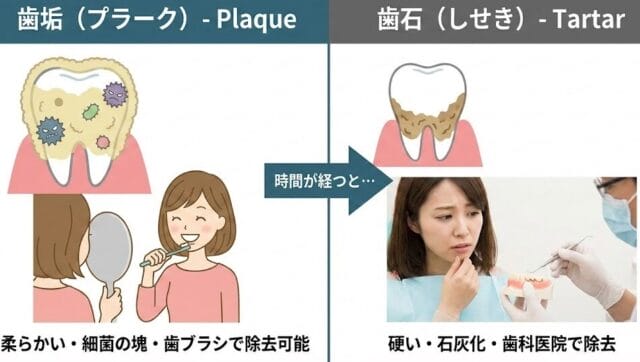 歯垢に含まれる細菌が歯周病を引き起こし、歯垢が固まって歯石になると、さらに細菌が増殖します。
