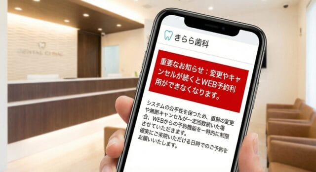 キャンセルや予約変更が頻繁に繰り返される場合、他の患者様のご予約機会が減少してしまいます。そのためWEB予約のご利用を一時的に制限させていただく場合がございます。