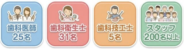 きらら歯科では、歯科医院として国内でも最大規模の約200名のスタッフが在籍しています。