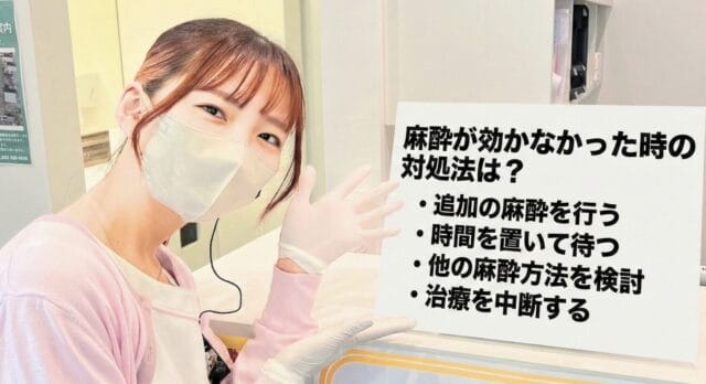 もし麻酔が効きづらい場合は、追加で麻酔を行ったり、電動麻酔や伝達麻酔など別の方法を試したりすることで、痛みを抑えることがる可能性がありますので、遠慮なくご相談ください。