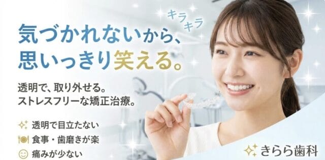 最大の特長は、装置が透明で非常に目立ちにくいことです。装着していても周囲に気づかれにくいため、見た目を気にせず治療を進めたい方や、人前に出る機会の多い仕事の方などに選ばれています。