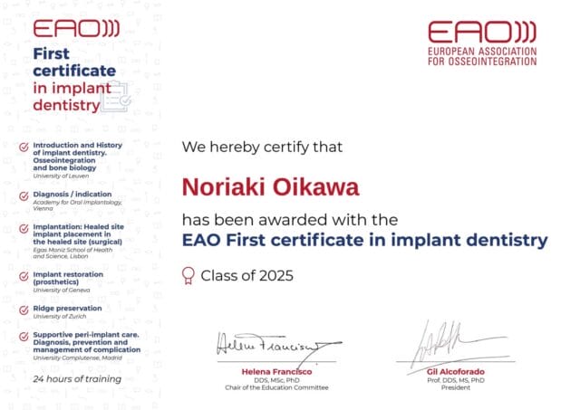 日本口腔インプラント学会認定100時間コース・インビザラインGo矯正Certificate取得・野田先生矯正歯科ベーシックセミナー・オパールエッセンスセミナー・炭酸ガスレーザーセミナー・リプレイスインプラントセミナー・京セラPOIインプラントセミナー・Hu-Friedyシャープニングセミナー・岡山大学人体構成学臨床解剖実習セミナー・サンメディカル社スーパーボンドセミナー・太平化学感染対策・消毒・滅菌セミナー・beyond®オフィスホワイトニングセミナー・サンスター(株)口腔ケアセミナー・ヨシダ(株)歯科用レーザーセミナー・ヨシダ(株)口腔ケアセミナー・松風(株)診査診断セミナー・ヨシダ(株)REファイルセミナー・CAD/CAM冠支台歯形成セミナー・令和3年度医療安全セミナー・モンダミンハビットプロセミナー・GSK主催シュミテクト・カムテクト研修・保田矯正塾全顎矯正歯科治療コース修了