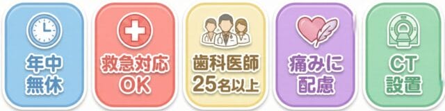 - 24名の歯科医師がシフト制で勤務し、専門的な治療が受けられる